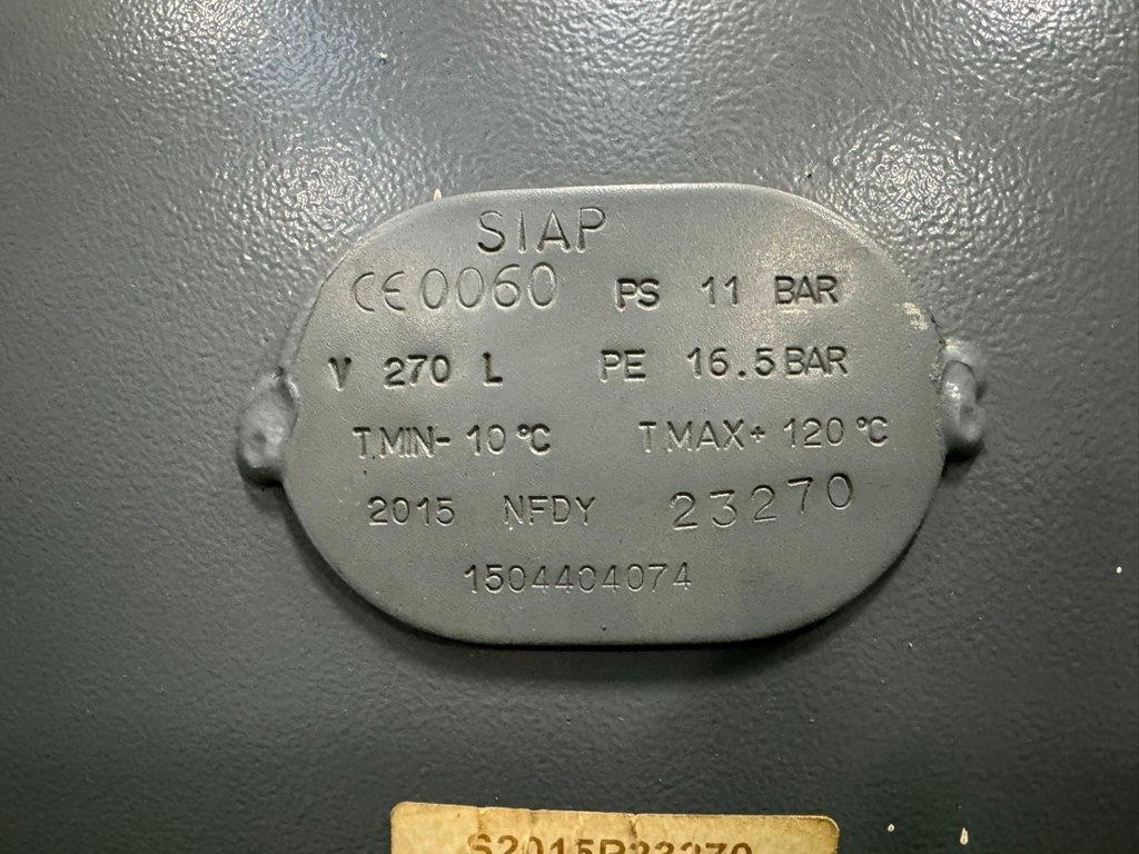 270 Litre Capacity. Max. Pressure 11 Bar. Dimensions L x W x H 1500mm x 600mm x 1000mm. Approx. weight 100kgs