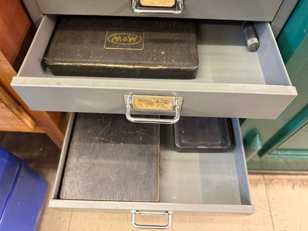 Lot 114: BISLEY 15 Drawer Cabinet containing qty of Measuring Equipment Number of watchers: 0