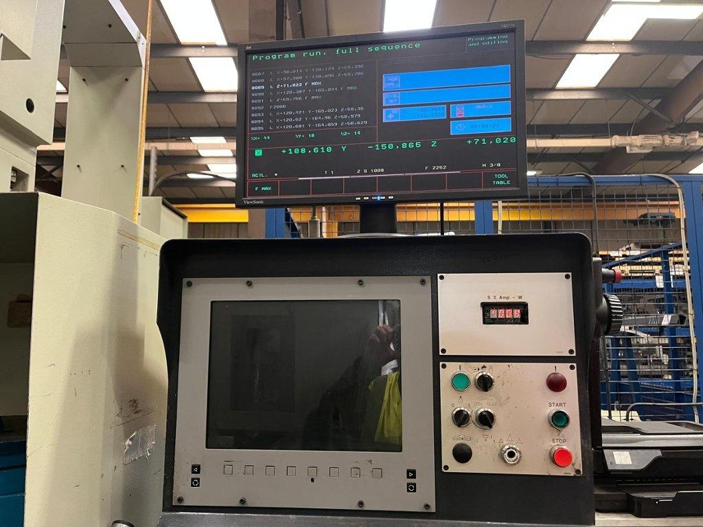 Table dimensions 3000mm x 1250 mm. Number of T slots 8. T slots dimensions 22 mm. X axis traverse 2500 mm. Y axis traverse 1800 mm. Distance between columns 1680 mm. Z axis traverse 800 mm. Head Type Standard vertical spindle. Tool clamping system Hydraulic. Spindle Taper ISO 50. Speed Range 20-2000 rpm. Spindle power 22 kW. Feedrates 2-5000mm/min. Rapids 15000/12000 mm/min. Maximum weight on table 10,000 kg. External Guarding.Universal Milling Head. Coolant. Manual Toolchange. Machine dimensions 7300mm x 2690mm x 3400mm. Machine Weight 21,500 kg.