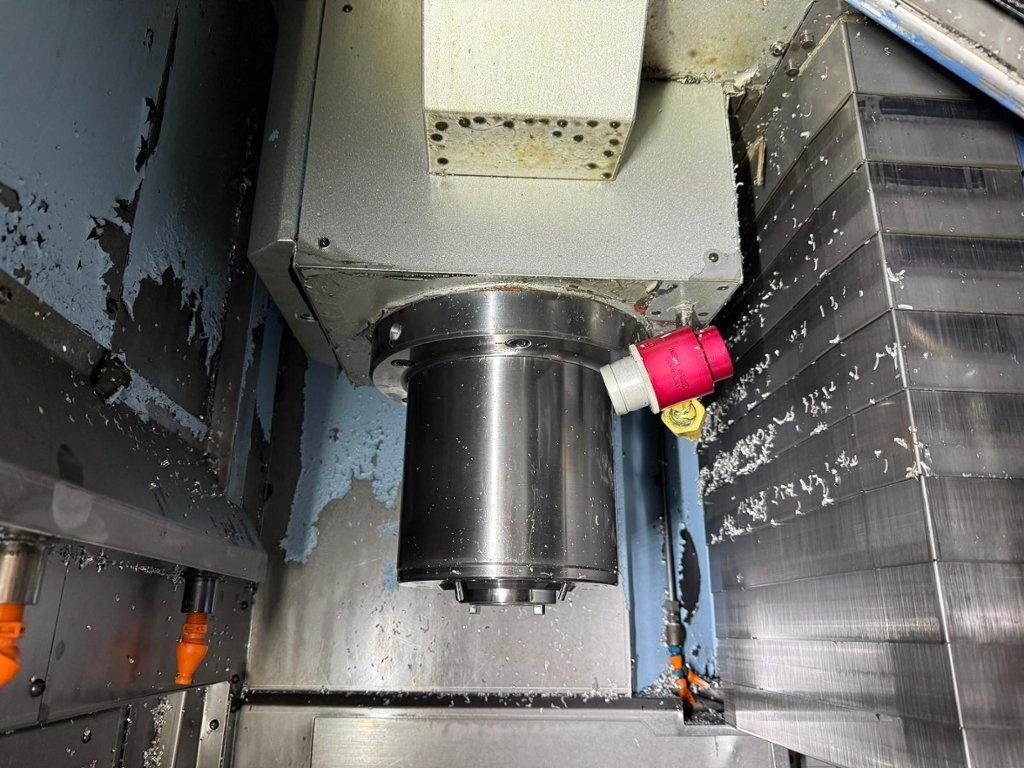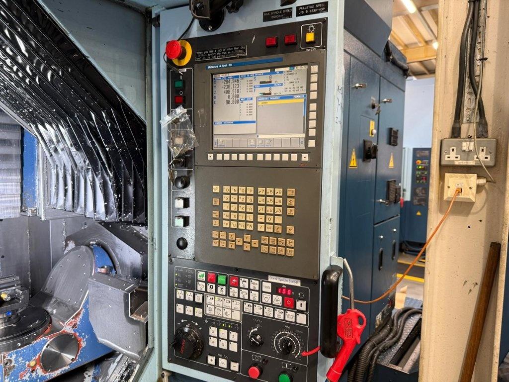 Twin pallet. Axis X 510 mm. Axis Y 410 mm. Axis Z 450 mm. B axis +/- 100 degrees. C axis 0.001 degrees 360 rotation. Max. part weight 40 kg. Maximum workpiece size 250mm x 250mm x 250mm. Number of tool pockets 30. Spindle taper BT 40. Max. spindle speed 15000 rpm. Spindle motor power 7.5 kW. FANUC G-Tech 30i. Year of manufacture 2004.