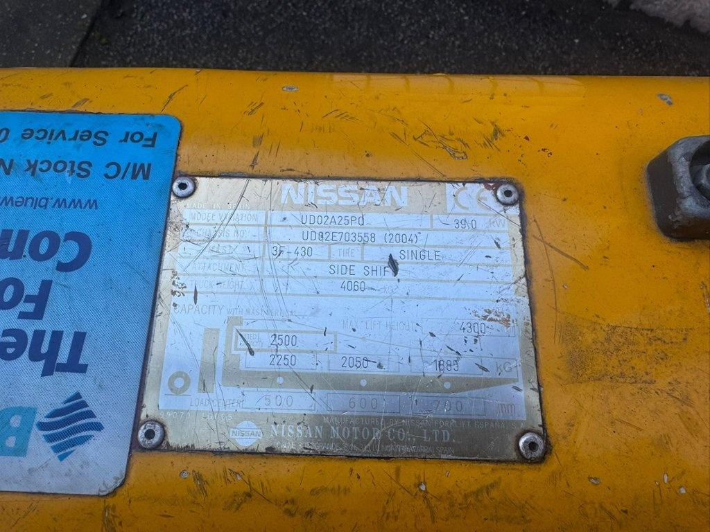 Lot 2: NISSAN Model UD02A25PQ 2500KG Capacity Gas Forklift Truck. Year 2004 Number of watchers: 2