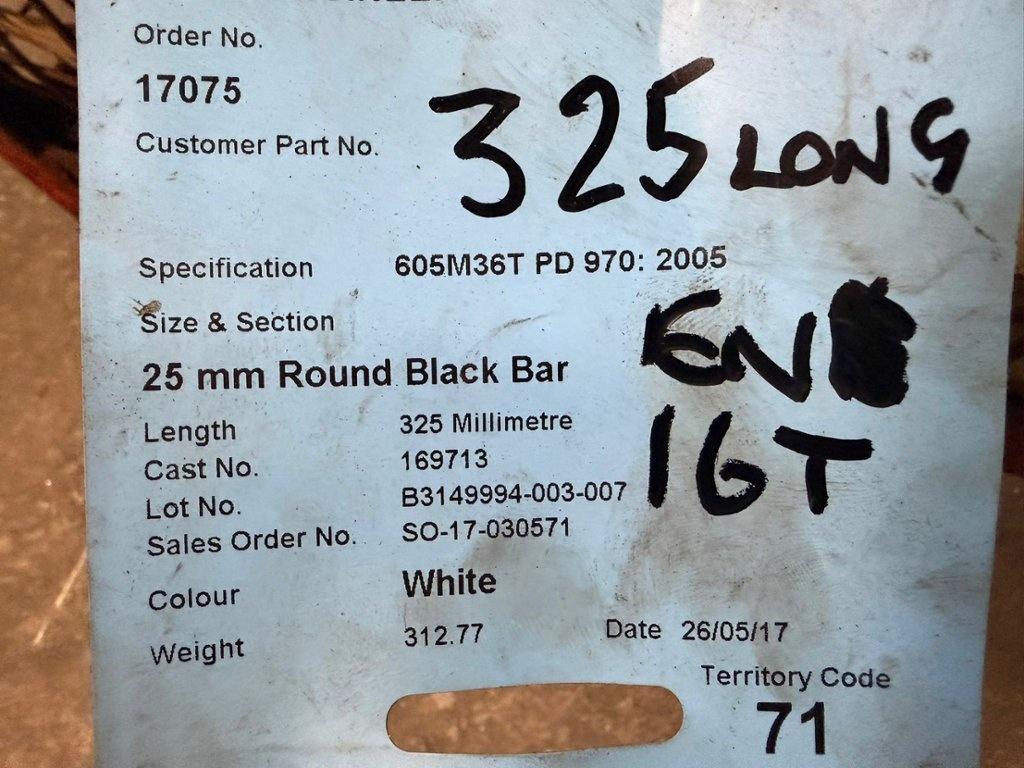 Lot 219: Qty of 25mm x 325mm Round Black Bar in Steel Stillage Number of watchers: 0