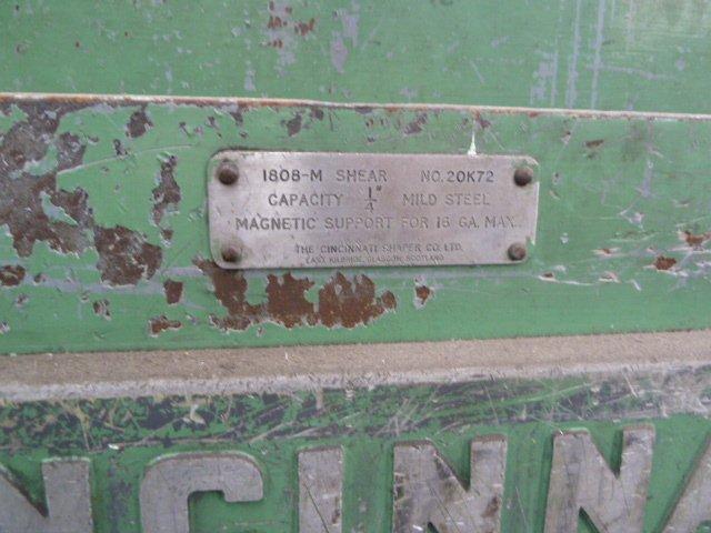 Capacity 8' x 1/4". Model No 1808-M. Serial No 20K72. Squaring Arm.