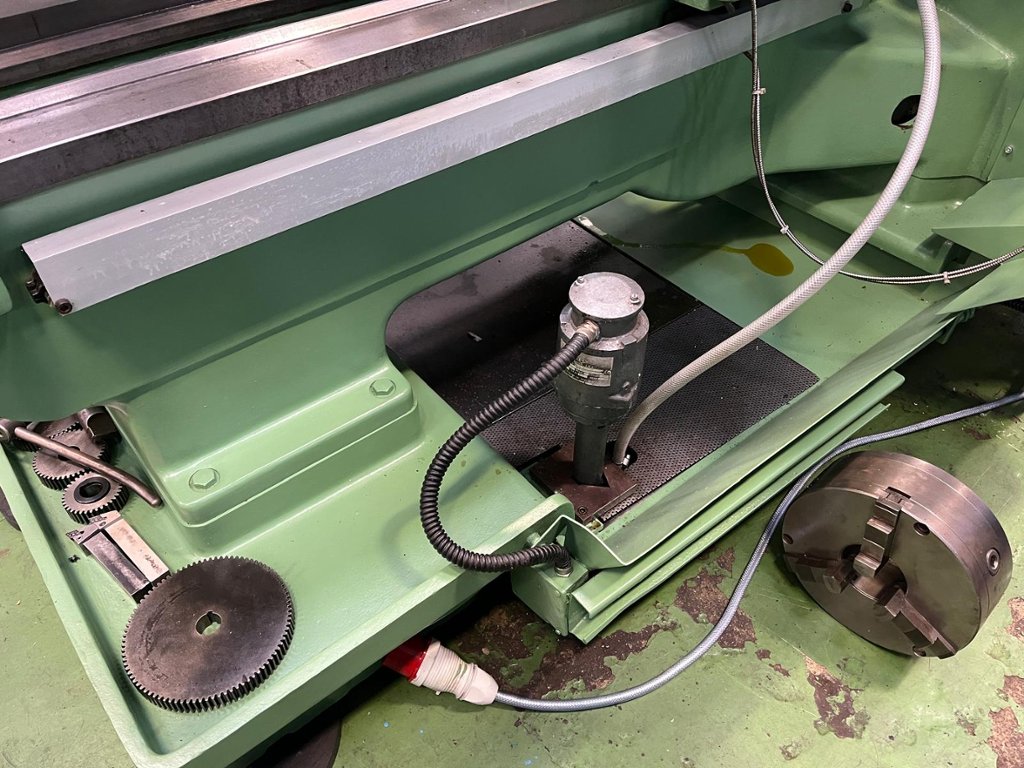 Swing over bed 495mm. Swing over cross slide 267mm. Swing in gap 737mm Width of gap in front of spindle nose 286mm. Width across bed shears 445mm. Distance between centres 1016mm. Spindle nose D1-8”. Spindle speeds 8-1120 rpm. Spindle bore 81mm. Spindle power 11.25 kW. Longitudinal feeds 0.056 – 1.6mm/rev. Cross feeds 0.28 – 0.8/rev. Fine belt drive feeds 0.009 – 0.033mm/rev.. Threads per inch (45) 2 – 56 TPI. Imperial pitches (42) 1/8 – 5”. Metric pitches (49) 0.5 – 120mm.Diametral pitches (63) 0.75 – 112. Module pitches (47) 1 – 56. Tailstock quill dia.76mm. Tailstock taper 4 morse. Quill travel 305mm. Cross slide travel 451mm. Compound slide travel 127mm. Machine complete with 3 & 4 jaw chucks. 4 way toolpost. Drilling attachment. Coolant. Chuck guard. Kick emergency stop. Newall B60 2 axis DRO. 3 point roller steady. Machine dimensions L x W 3000mm x 1500mm. Approximate weight 3500 kg.