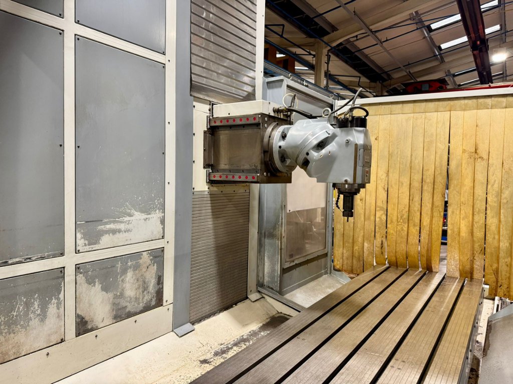 Table size 3100mm x 900mm. Longitudinal travel 3000mm. Cross traverse 1000mm. Vertical traverse 1500mm. Maximum weight on table 6000 kg. Spindle taper 50 ISO. Maximum speed range 3000 rpm. Main motor power 22 kW. Rapids 20m/min. Heidenhain TNC530 Control. Manual toolchange. Manual indexing head. Coolant. Overall dimensions L x W x H 8090mm x 4728mm x 3770mm. Approximate weight 17,000 kg