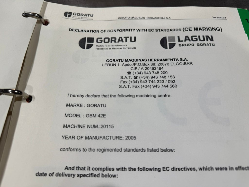 Table size 4200mm x 1000mm. Longitudinal travel 4000mm. Cross traverse 1200mm. Vertical traverse 1500mm. Maximum weight on table 10000 kg. Spindle taper 50 ISO. Maximum speed range 3000 rpm. Main motor power 28 kW. Rapids 10m/min. Heidenhain TNC530 Control. Manual toolchange. Manual indexing head. Coolant. Overall dimensions L x W x H 9820mm x 6000mm x 3752mm. Approximate weight 21,600 kg