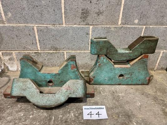 Lot 44: Matching Pair of Heavy Duty Cast Iron Vee Blocks with Clamps 25'' x 6.5'' x 11'' High