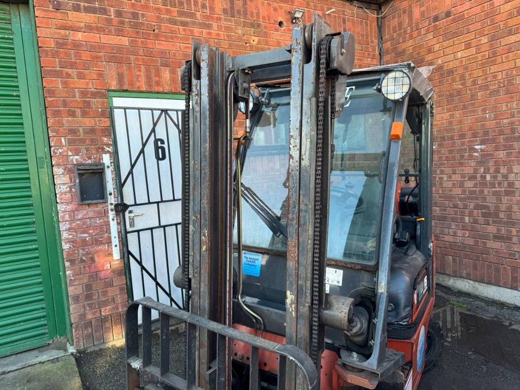 SKU No: 250144. 7416 Hours. Max. lift height 3300mm. Sideshift. Fork Length 1090mm. Serial No: Pd01E704049. Length 3300mm. Width 1100mm. Height 2120mm. Weight 2865Kg