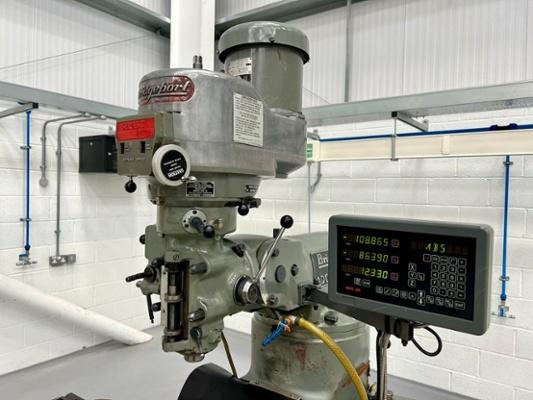 Table size 42'' x 9''. Spindle speeds 50-3750 rpm (inf.var). Spindle taper R8. Powered longitudinal feed. Coolant. Serial No. 236390776S. Year 1976. Overall dimensions 62'' x 62'' x 82''. Approx weight 1.25 tons