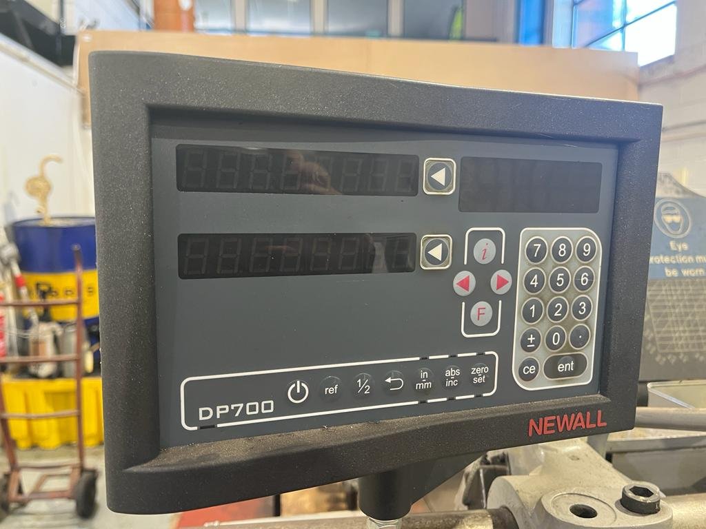 Swing over bed 14.1/2''. Swing over cross slide 9.1/2''. Spindle speeds 37 - 750 rpm. 4 way toolpost. Rear toolpost. Turret tooling. Spindle bore 2.3/4″.Motor 7.5 kW. Manual collet chuck. Newall DP700 DRO. Splash guard.