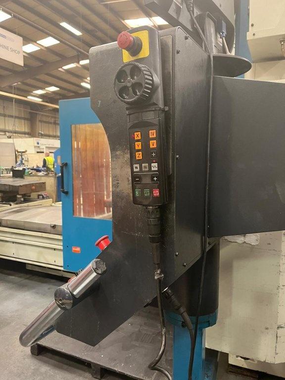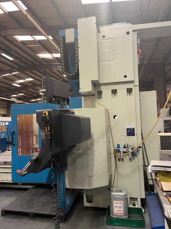 Table dimensions 3000mm x 1250 mm. Number of T slots 8. T slots dimensions 22 mm. X axis traverse 2500 mm. Y axis traverse 1800 mm. Distance between columns 1680 mm. Z axis traverse 800 mm. Head Type Standard vertical spindle. Tool clamping system Hydraulic. Spindle Taper ISO 50. Speed Range 20-2000 rpm. Spindle power 22 kW. Feedrates 2-5000mm/min. Rapids 15000/12000 mm/min. Maximum weight on table 10,000 kg. External Guarding.Universal Milling Head. Coolant. Manual Toolchange. Machine dimensions 7300mm x 2690mm x 3400mm. Machine Weight 21,500 kg.