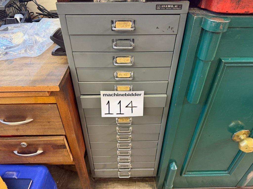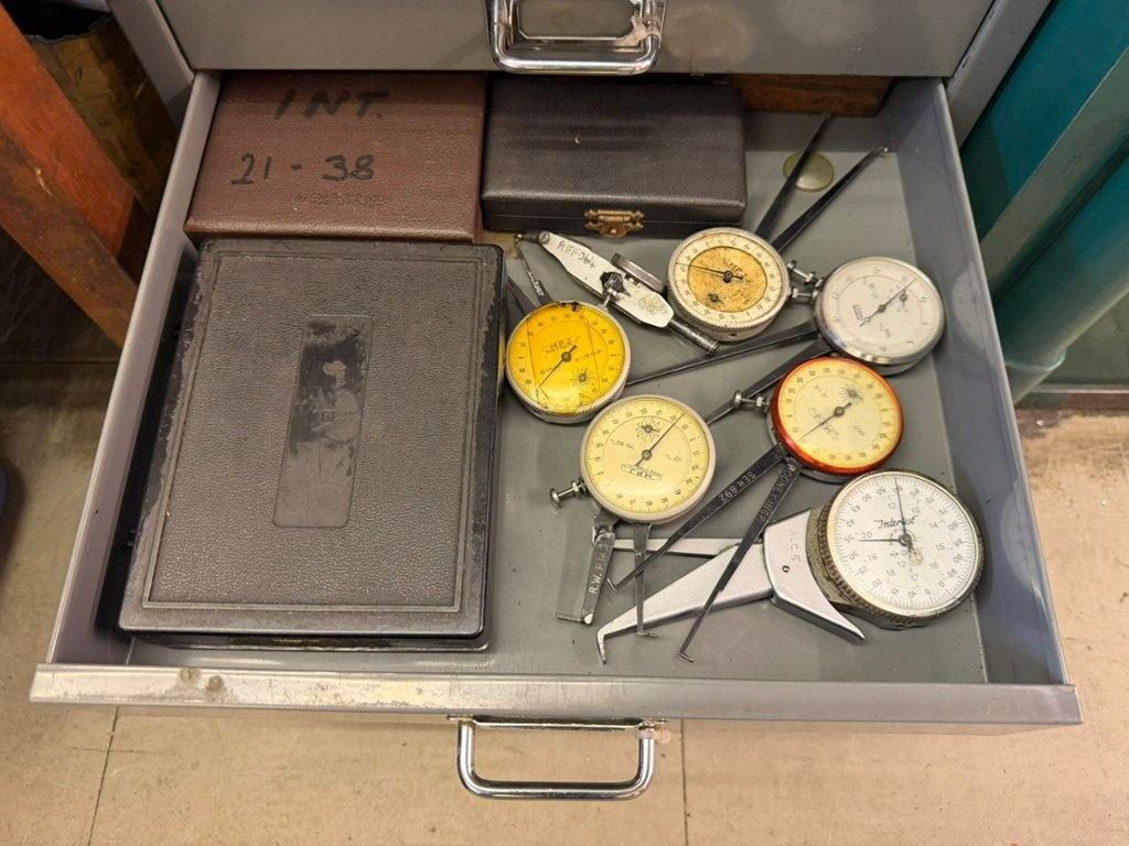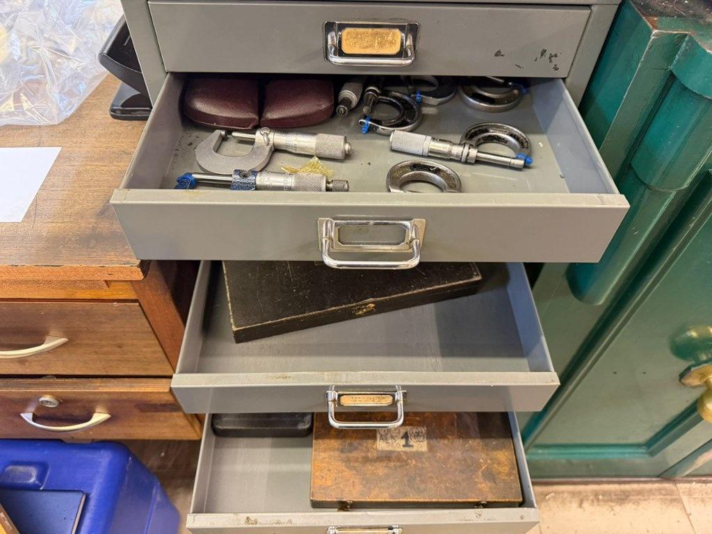 Lot 114: BISLEY 15 Drawer Cabinet containing qty of Measuring Equipment Number of watchers: 0