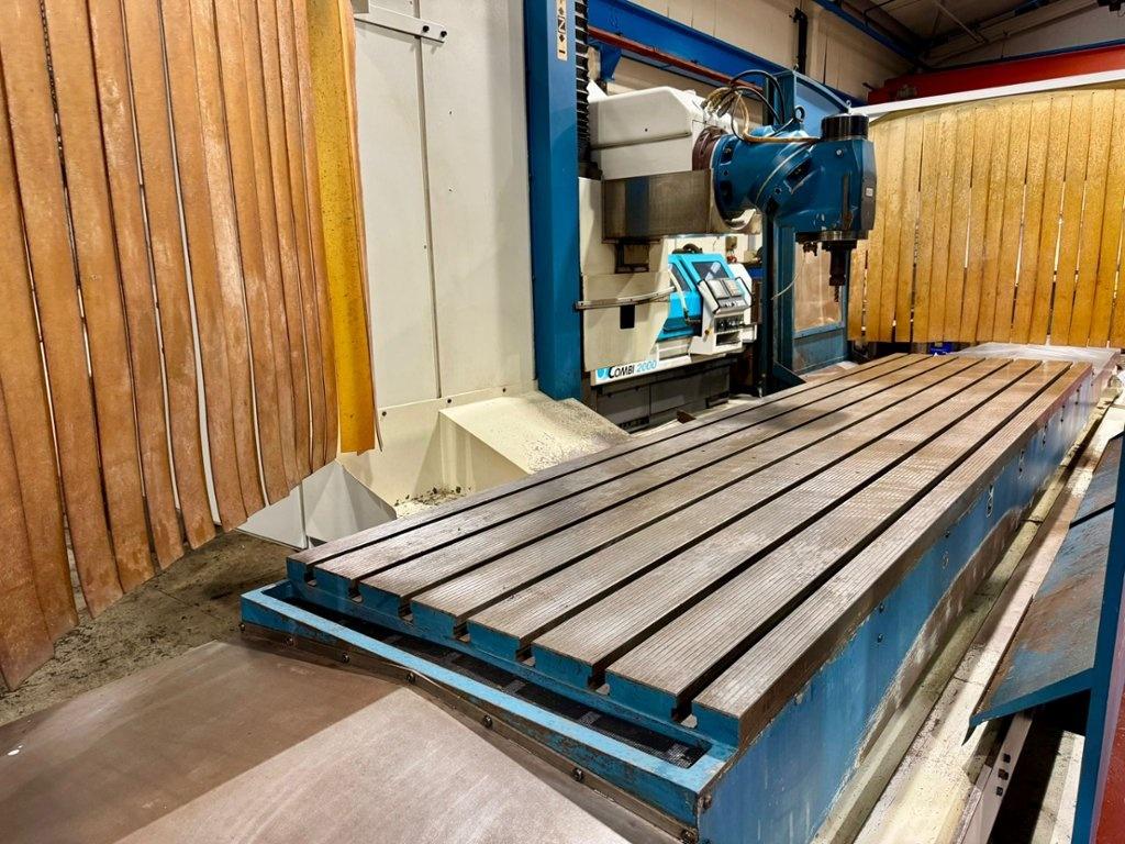 Table size 4200mm x 1000mm. Longitudinal travel 4000mm. Cross traverse 1200mm. Vertical traverse 1500mm. Maximum weight on table 10000 kg. Spindle taper 50 ISO. Maximum speed range 3000 rpm. Main motor power 28 kW. Rapids 10m/min. Heidenhain TNC530 Control. Manual toolchange. Manual indexing head. Coolant. Overall dimensions L x W x H 9820mm x 6000mm x 3752mm. Approximate weight 21,600 kg