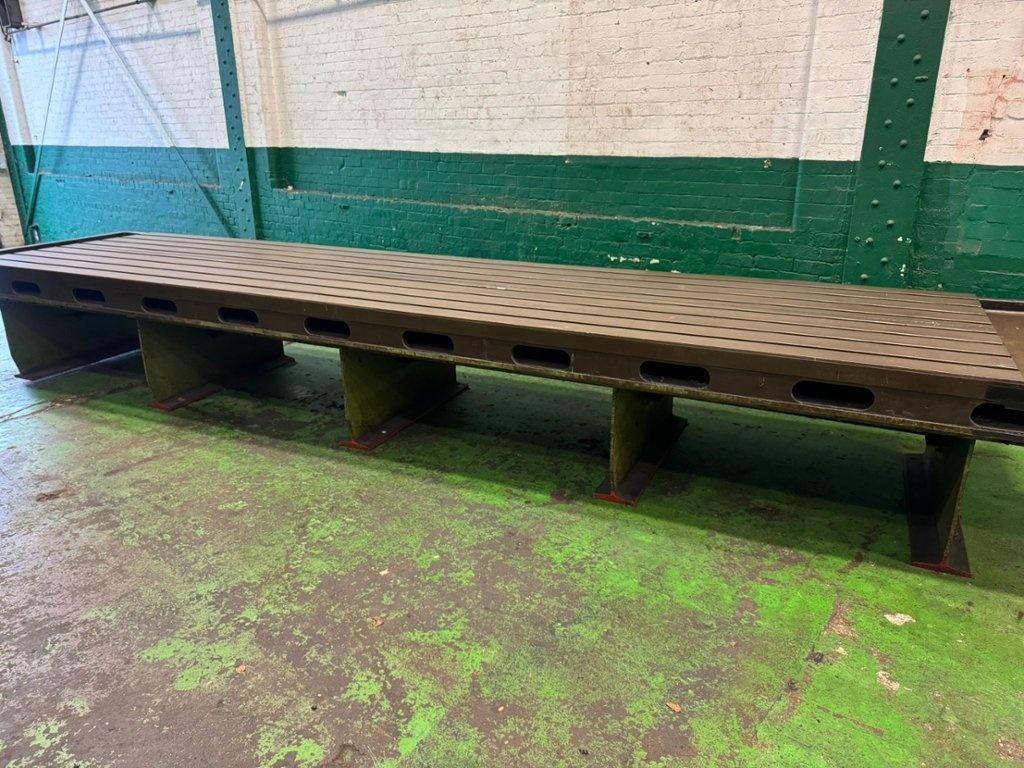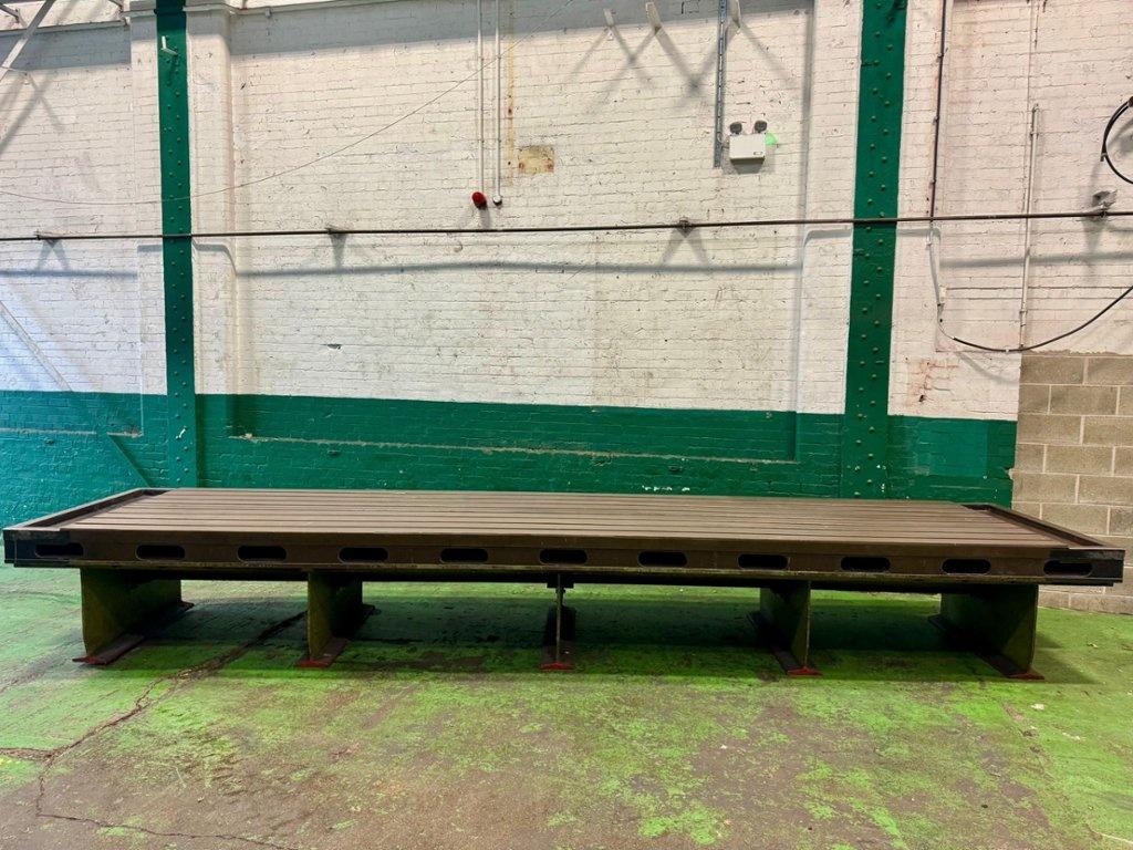 Total length 6500mm. T Slot Length 5485mm. Dimensions L x W x H 5485mm x 1370mm x 820mm. Approx. weight 7700kgs