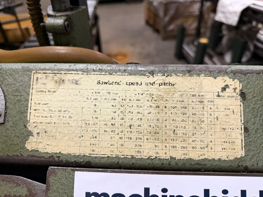 Max. capacity 260mm. Variable Cutting Blade Speed 17-120m/min. Coolant. Dimensions (Saw) L x W x H 1800mm x 1000mm x 1150mm. Approx. weight 500kg. Table L x W 2500mm x 500mm