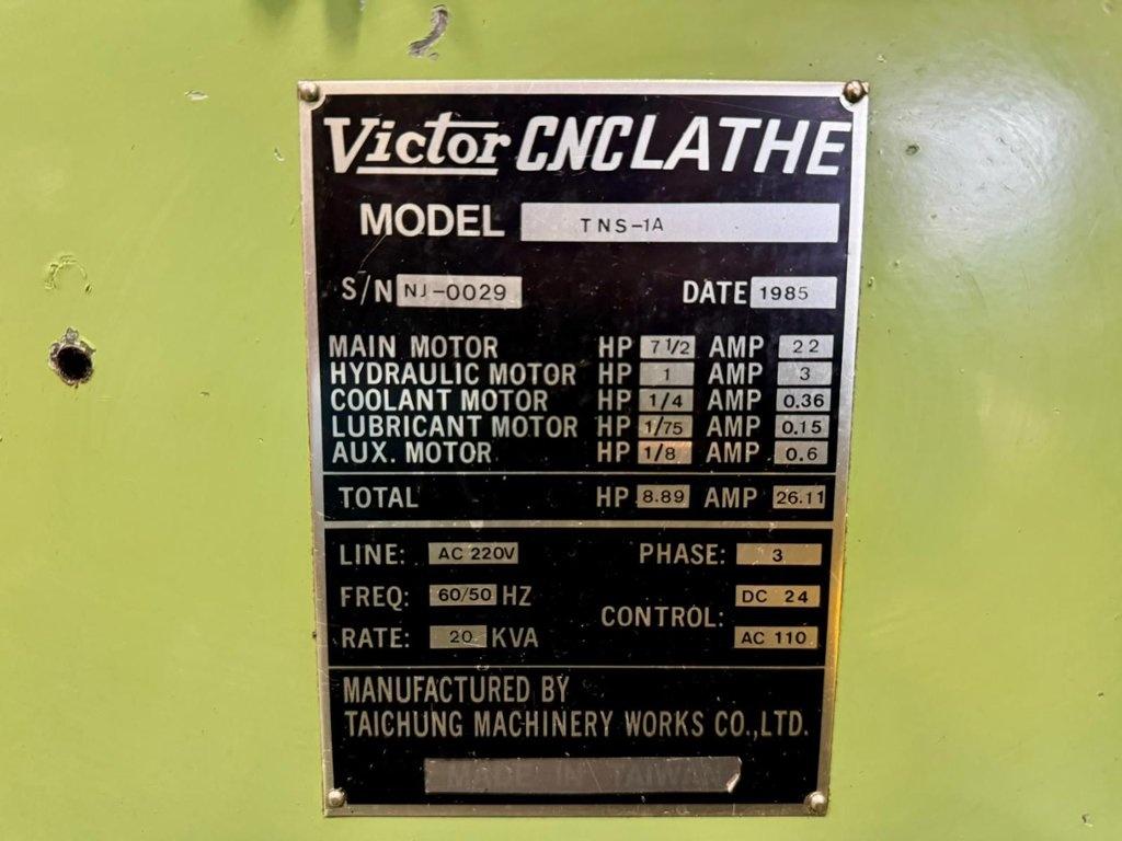 Lot 12: VICTOR TNS-1A CNC Lathe with Fanuc 10T-A Control. Year 1985 Number of watchers: 0