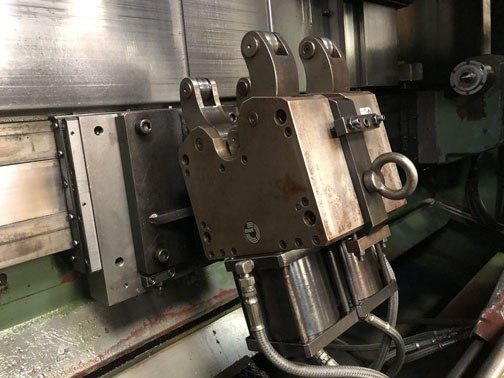 Maximum swing 420mm. Maximum swing over turret slide 310mm. Maximum length turned 1495mm. Distance between centres 1500mm. Spindle bore 60mm. Spindle speeds 5-2600 rpm. 12 station Turret. SMW Twin Programmable steady Type 2.1. Fitted with Forkardt 3NH-230-65-K8-S12-44014 3 jaw powered chuck. Machine complete with assortment of accessories including a steel cabinet containing a large quantity of throwaway tipped turning/boring tools. Machine Serial No.50946. Weight 4900kg