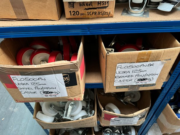 Lot 131: 3 x Bays of Shelving containing various Nylon Castor Wheels