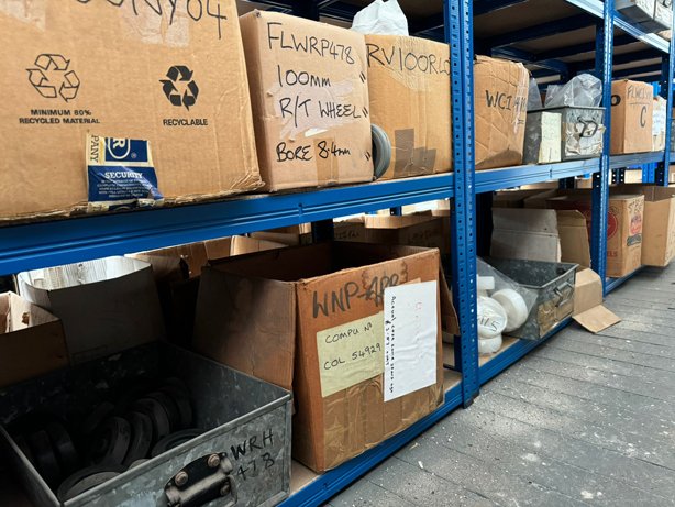 Lot 135: 4 x Bays of Shelving containing various Nylon Wheels