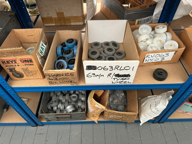Lot 136: 4 x Bays of Shelving containing various Nylon Wheels & Fixing Screws