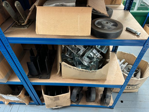 Lot 127: 5 x Bays of Shelving containing various sized Castors/Wheels