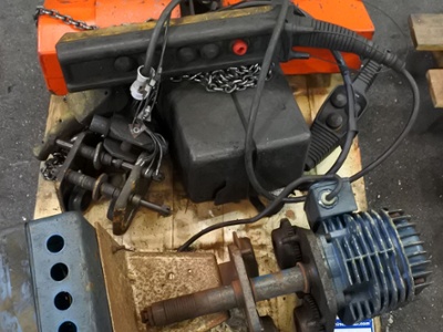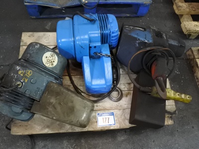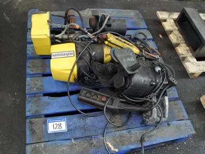 123" under beam.104" under hook. 120" span. Complete with Deamag 125kgs electric hoist.