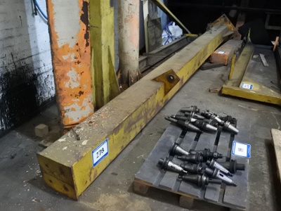 Capacity 500kgs. 98" under beam. 80" long primary jib. 70" long secondary jib.