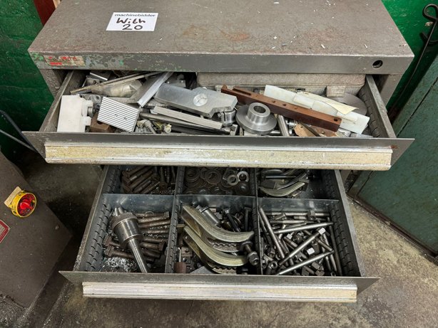 Table size 42'' x 9''. Spindle speeds 50-3750 rpm (inf.var).Spindle taper R8. Powered longitudinal feed. Coolant. 6 drawer tooling cabinet. Complete with accessories as lotted. Serial No. 312850879V. Year 1979.Overall dimensions 62'' x 62'' x 82''. Approx weight 1.25 tons