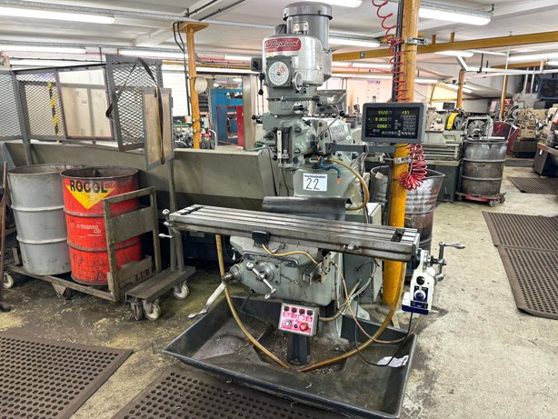 Table size 42'' x 9''. Spindle speeds 50-3750 rpm (inf.var).Spindle taper R8. Powered longitudinal feed. Coolant. Complete with accessories as lotted. Serial No. 236390776S. Year 1977.Overall dimensions 62'' x 62'' x 82''. Approx weight 1.25 tons