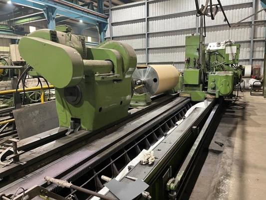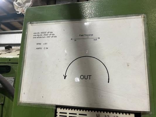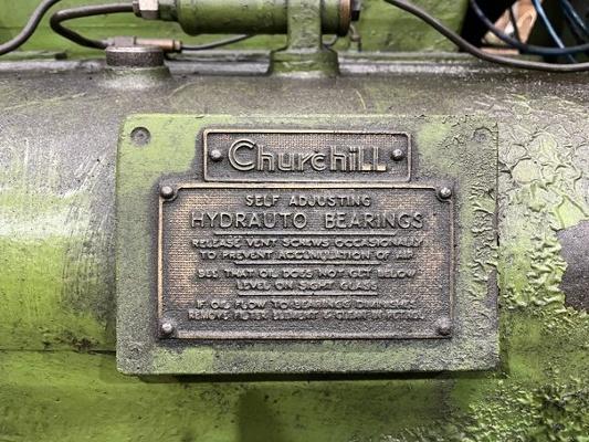CHURCHILL Model TWA Roll Grinding Machine. Swing over bed 40". Distance between centres 240". Maximum dia. ground with New Grinding Wheel 32". Minimum dia. ground with New Grinding Wheel 2". New Grinding Wheel Size 26" x 2" x 12" bore. Workhead speeds 8-24 rpm. Traverse speeds 2.5" - 66"/minute. Complete with 2 x Roll journal steady rests. Wobble drive.Cambering Attachment. Coolant Tank & Fittings.