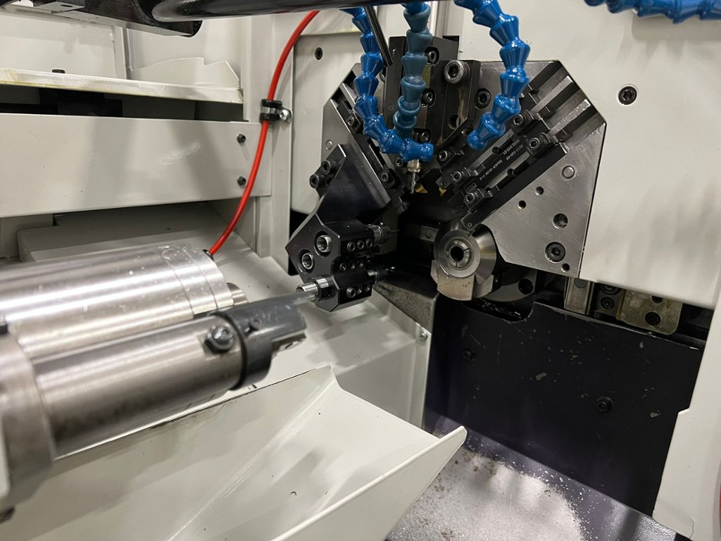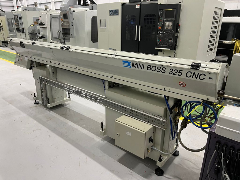 Maximum machining dia. 12mm. Maximum machining length 135mm. Maximum drilled hole dia. 6mm. Maximum dia. for tapping M6. Spindle thro’ hole dia. 14mm. Spindle speeds 100 – 12,000 rpm. Spindle collet chuck FC096-M. Guide bushing WFG541-M. Drill chuck AR11 & ER11. No. of mountable tools – Byte 5 Drilling 3. Tool size Byte 10mm x 10mm x 120mm. Sleeve 20mm dia. Rapid feedrate X&Y 21m/min. Z 15m/min. Least input increment X/Y/Z 0.001mm. Bar length 2500mm. Centre height of bar 1000mm. Motor rating – Spindle drive 1.5/2.2kW (15 minutes rated). X/Y/Z axis feed motors 0.3kW. Chuck opening/closing control motor & separator control motor 0.2kW. Coolant motor 0.18kW. Lubrication motor 0.002kW. Input power capacity 4Kva. Year 1997. Machine complete with IMECA Mini Boss 325CNC Barfeed (1997)