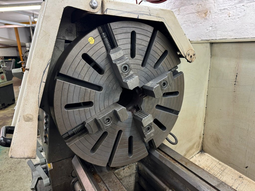 Swing over bed 25''. Swing over cross slide 15.3/8''. Swing in gap 36''. Distance between centres 90''.Spindle Speeds 6.3-1250 rpm.Spindle bore 4.5/8''. Fitted with 24.5/8'' 4 jaw independent chuck.Multifix Type C Toolpost with toolholders. 3 point fixed steady 13.1/2'' dia.capacity. Emergency stop. Serial No.LMG900MLPi 00547. Overall dimensions 167'' x 61'' x 66''. Approx weight 4.5 tons