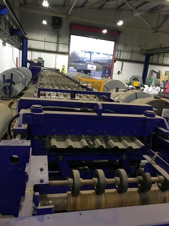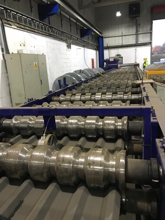 Roofing line from coil.Comprising 10 ton Decoiler. Rollformer with tooling to produce box profile.Cut off shear. Stacker and electrical controls.
