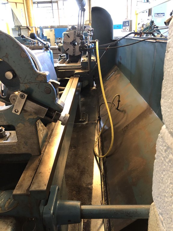 Swing over bed 572mm. Swing over cross slide (with guard) 330mm. Swing over cross slide (without guard) 381mm Distance between centres 3048mm. Spindle speeds 10 - 800 rpm. Spindle bore 92mm. Dual dials. Rapid traverse to saddle. 4 way toolpost. Drilling attachment. 660mm dia, faceplate. 460mm dia. 4 jaw chuck. 380mm dia. 3 jaw chuck. 300mm dia. Drive plate. 3 point roller steadies 180mm dia. Spare tailstock quill. Change gears. Revolving pipe centre. Coolant. Main motor 15 kW. Machine serial no. 38288-3-70. Year 1970.