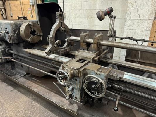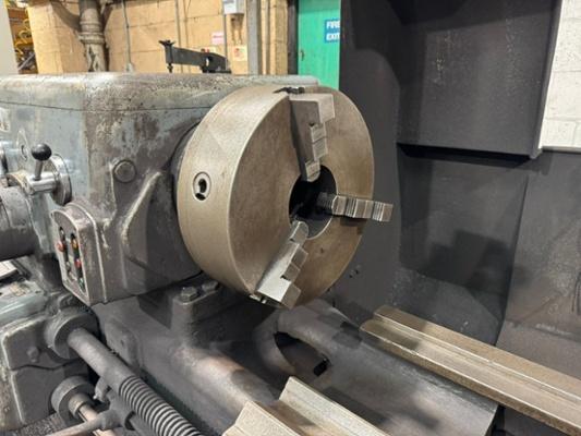 Swing over bed 559 mm Swing over cross slide 305 mm. Distance between centres 2438 mm Spindle speeds 13.7– 1100 rpm. Spindle dia. 88 mm. Motor 12.5 HP . Fitted with 400mm dia. 3 jaw chuck. 4 way toolpost. Tailstock. 2 x Boring bar supports for deep hole boring.Boring bar.Dual Dials. 3 point roller steady.Coolant.Overall dimensions L x W x H 5800mm x 1300mm x 1700mm. Approximate weight 6000kg.