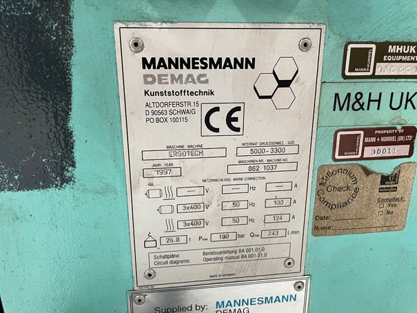 Lot 5P: DEMAG 500 Ton Model 5000-3300 NC4 Injection Moulding Machine. Year 1997 - OFFER ACCEPTED