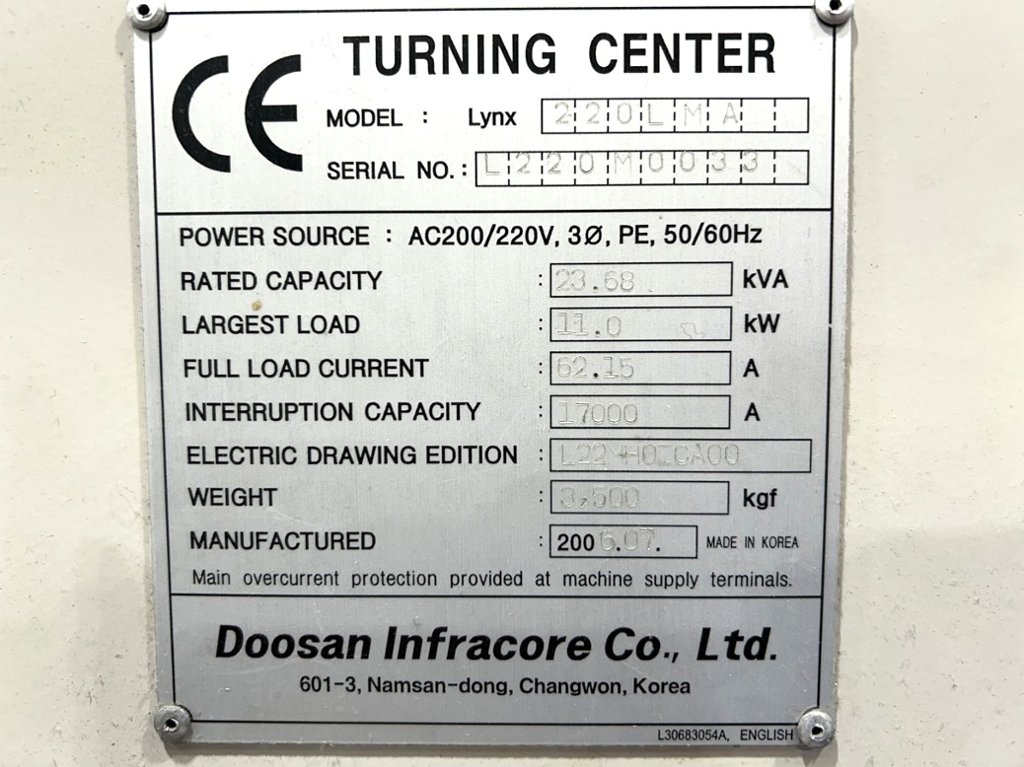 Lot 2: DOOSAN Lynx 220LMA CNC Lathe with Fanuc i-Series Control. Year 2006.