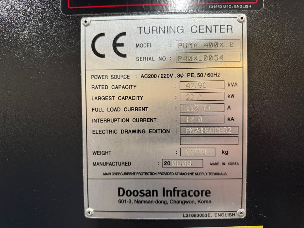Lot 1: DOOSAN Puma 400XLB CNC Turning Centre with Fanuc Series 21i-TB Control (2008)
