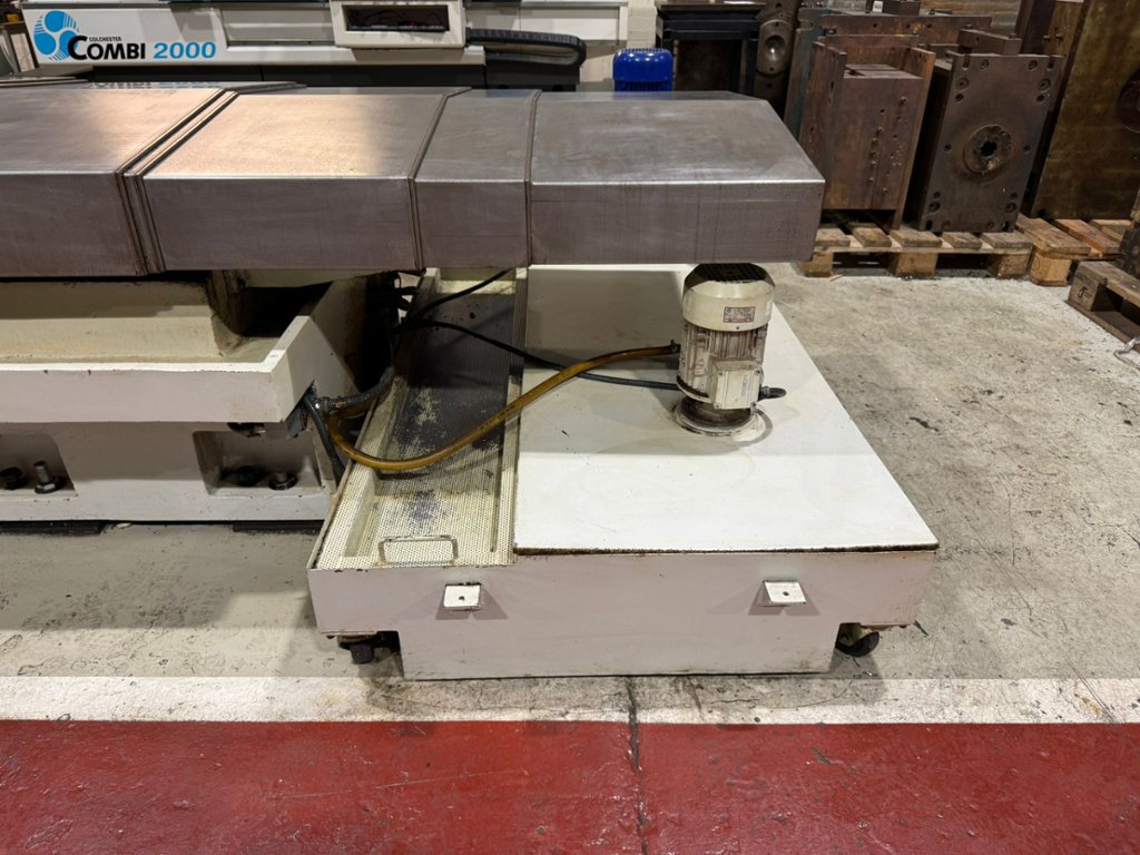 Table size 4200mm x 1000mm. Longitudinal travel 4000mm. Cross traverse 1200mm. Vertical traverse 1500mm. Maximum weight on table 10000 kg. Spindle taper 50 ISO. Maximum speed range 3000 rpm. Main motor power 28 kW. Rapids 10m/min. Heidenhain TNC530 Control. Manual toolchange. Manual indexing head. Coolant. Overall dimensions L x W x H 9820mm x 6000mm x 3752mm. Approximate weight 21,600 kg