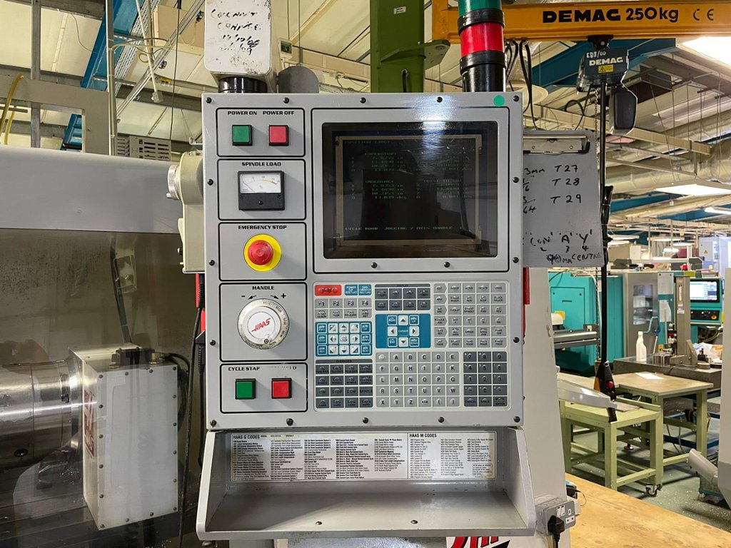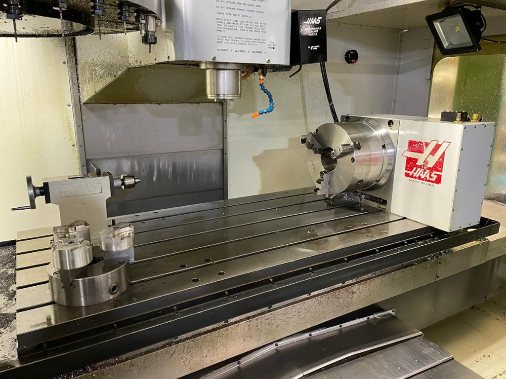 Table size 1626 X 711mm. Travels X/Y/Z 1626/ 813/762mm. HAAS 4th Axis with Tailstock. Coolant. Scrap Auger. Serial number 23678. 20HP