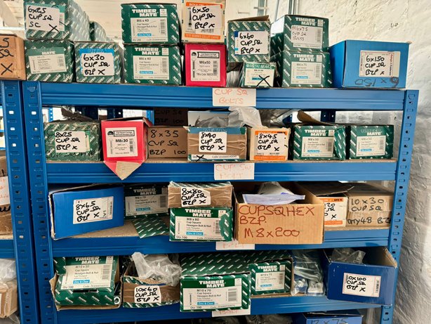 Lot 122: Large Qty of Fasteners & Fixings including Bolts, Nuts, Washers, Screws, etc etc. - Including Shelving & Bins