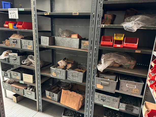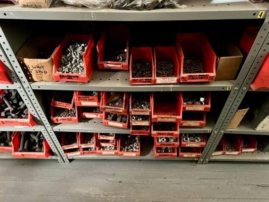 Lot 113: Large Qty of Fasteners including Nuts, Bolts,Screws etc etc as lotted - Including Shelving & Bins