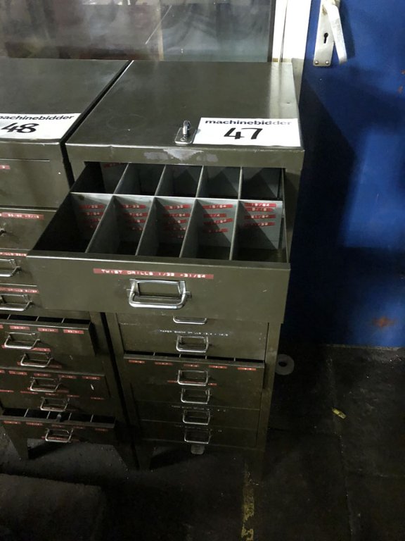 Lot 47: Metal 9 drawer cabinet with sectioned drawers