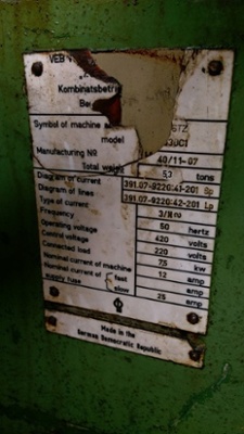 Table dia. 500mm. Max 630 mm, Min 50 mm, Number of teeth 10 – 140, Max pitch 12 Module, Helix angle 45°, Max face width 160 mm, Max length of stroke 170 mm, Range of double strokes 75 - 350 per min, (Ram strokes stepless adjustable), Max weight of work piece 400 kg, Wheel size:- Max 350 mm, Min 270 mm, Wheel speed 1690 rpm, Motor Total Connected load 8Kw, Electrics 380-3-50, Complete With: Crowning Facility, Dresser, Tail Stock Removable, Wheel Arbour, Change Gears, Totally Enclosed Guarding, Coolant Supply