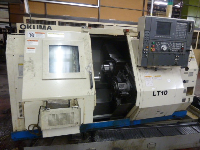 Okuma LT10 Twin Spindle/Twin Turret CNC Lathe with Okuma OSP7000L Control. Swing over bed 400mm. Max turning dia. 210mm. Max machining length 30mm. Distance between spindles 960mm. Serial No. 0097 (1997). Complete with 2 x 12 station turrets. 2 x 3 jaw powered chucks. Parts catcher. Swarf conveyor. Iemca VIP Magazine Barfeed. Serial No. 0200110Q06 (2001)