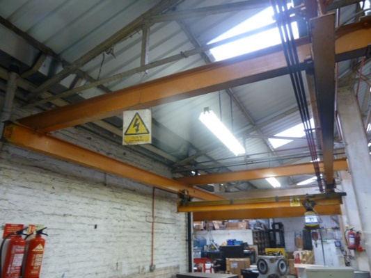 Comprising 2 x Underslung Crane beams 1 off 120" wide x 8" x 4" section. 1 off 50' Long x 12" x 6.5" section. 2 crane rails 1 x 50' Long. 1 x 35' long. 2 x Morris 1,000 kgs SWL Electric Hoists.