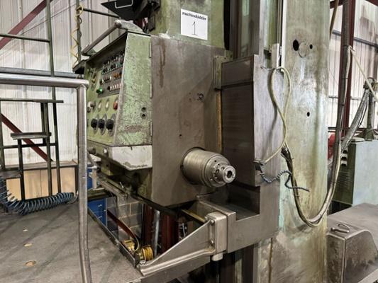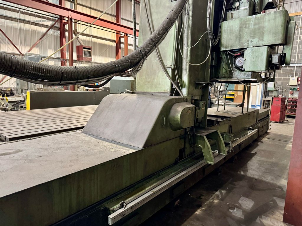 Table size 198'' x 92''. Spindle taper 50 International. X travel 165''. Y travel 84''. Z travel 24.4''. Spindle speeds 20 - 1200 rpm. Minimum distance spindle centre to table surface 24.4''. Manuals. Overall dimensions 452'' long x 196'' wide x 196'' high. Weight 40,000 kg. Machine has been dismantled prior to sale.