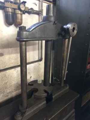 Lot 37: Quick release bench vice and arbor press on cast iron base