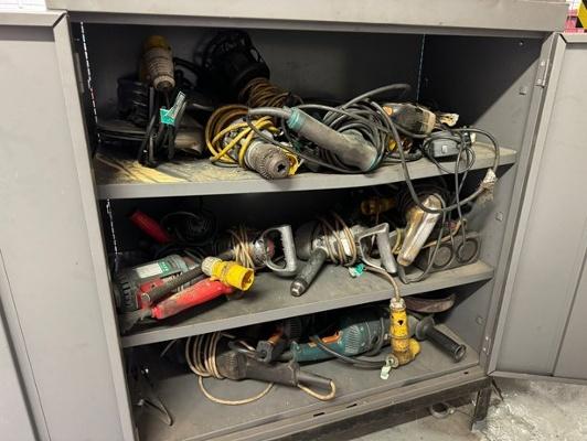 Lot 162: Steel Cabinets containing large qty of Hand Power Tools, Drills & Angle Grinders