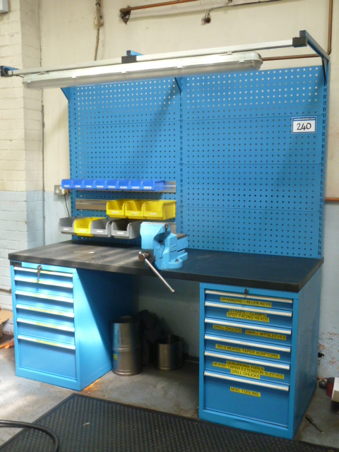 Fitted with 12 drawers (6 both side). Overhead Light. RECORD 25 Quick Release Vice. Overall Height 83".